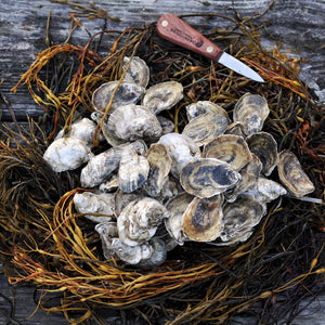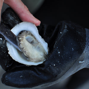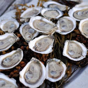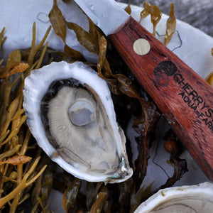 Growing these oysters in floating cages means they are constantly moved by both the tide and going in and out as well as wind moving the water's surface. This increased friction means the outer finges of the oysters' shells are worn away to farm a deeper cup. That means more space for meat and that delectable oyster liquor!