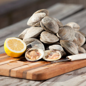 Littlenecks: Around 7/8" to 1" across the hinge these hard shelled clams can be grilled, steamed, served with pasta, made into soup, or enjoyed on the half shell. The smaller of our clams, their tenderness is unparalleled!